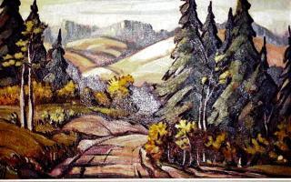 1958 ORIGINAL OIL ON BOARD (THE ROADWAY) BY LISTED CANADIAN ARTIST ALEC J GARNER.